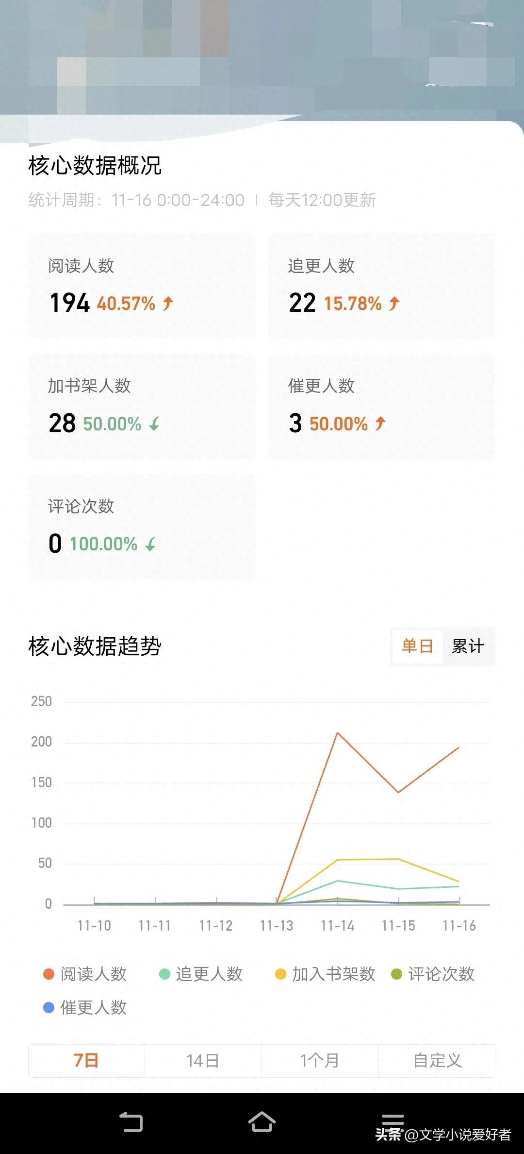 ②.不要随便切书,除非十万完读率不到0.5%,坚持写到30万字,如果还不行,那就可以考虑完结了,如果数据还行就继续写,总有惊喜在前面等着你。