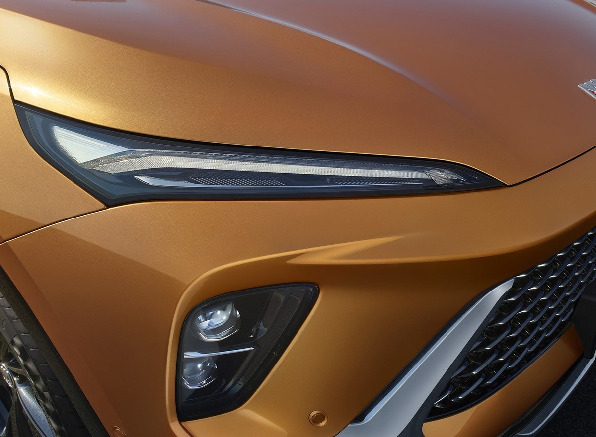 新款昂科威S在前脸部分对中网进行了升级,新车采用了梯形轮廓的格栅结构,内部由横向镀铬饰条勾勒,层叠化布局和黑色背板增强了立体感。机盖前端具有下溜型面和隆起筋线,搭配分体式日行灯带和纵向大灯组,呈现出个性科幻的点亮效果。前唇区域保留了扁平化黑色进气口,突显运动气质。