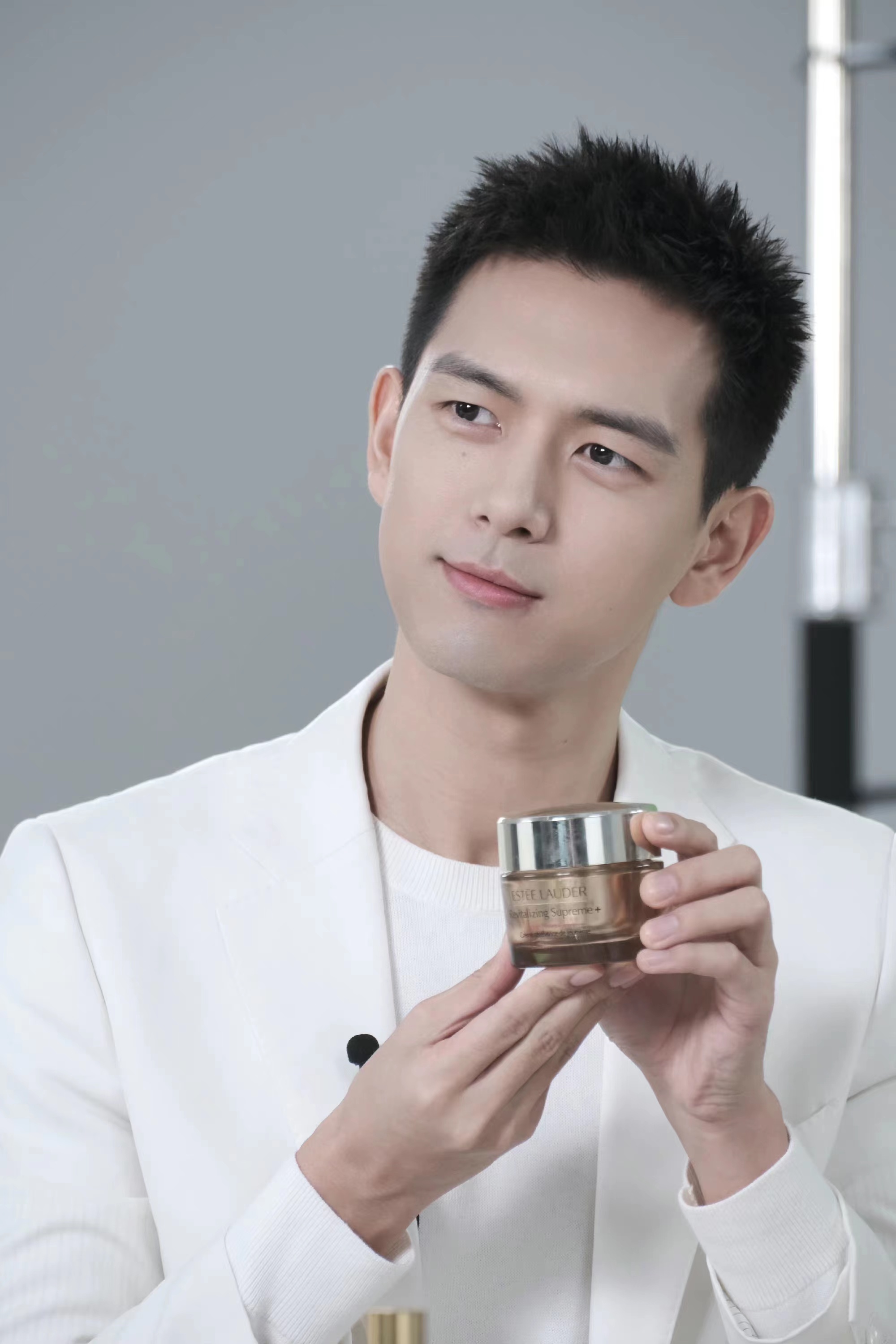 李现头发剪短了,超短发搭配一身白色西装,清爽又帅气