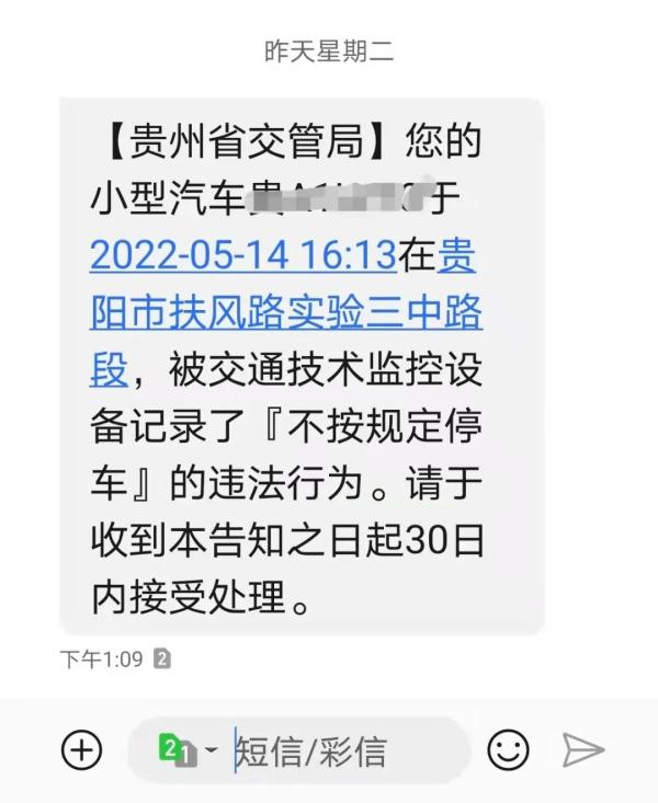 邓先生向贵阳市融媒问政平台反映,5月14日下午,他前往位于云岩区扶风路的贵阳市实验三中接学生放学,一位交警指挥自己在学校对面的道路旁停车。两天后,邓先生却收到了违停通知。