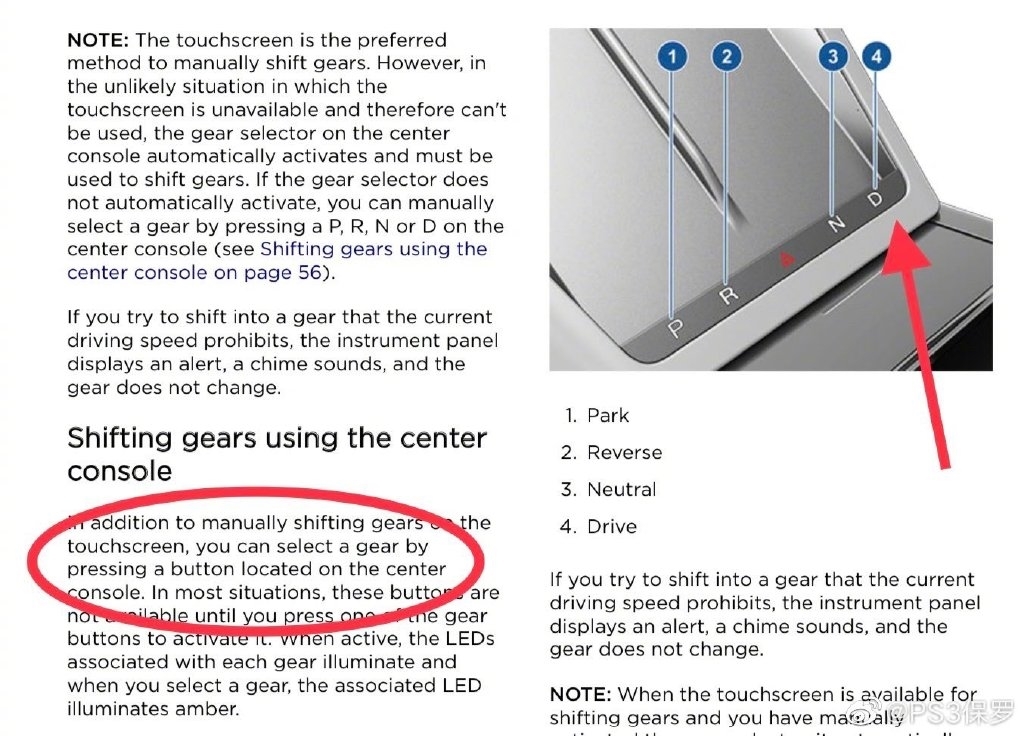 此外,除了自动换档之外,特斯拉还保留了触控换挡和按键换挡,触控换挡设置在屏幕左边,上滑前进挡,下滑倒档,停车自动P挡;而按键换挡设置在了中控无线充电板的下方,但如果当屏幕不可用时,可以激活这里的按键换挡。