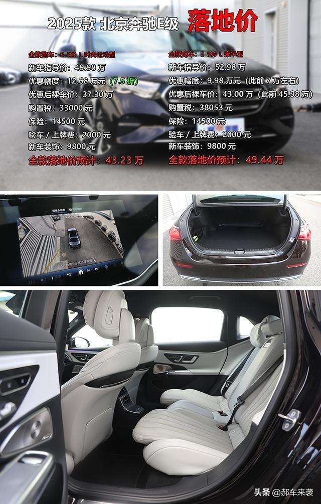 《郝车来袭》原创导购:众所周知,奔驰轿车系列关注度最高的车型,除了北京奔驰C级就是北京奔驰E级。近日,根据郝哥暗访北京地区某奔驰4S店得知,目前2025款北京奔驰E级全系狂打7.5折~8.1折左右,优惠后入门版裸车价仅售33.9万,那么从性价比角度出发,该选择哪款配置才最合适?推荐配置落地价和养车成本又如何呢?