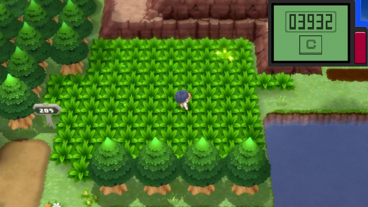 因为闪光百变怪意义不大,大家只是想拿来当RBQ(不是),所以就不需要像闪一样刷到40连,我一般是刷到10连就停手了,然后避开晃动的草丛走路充能,当遇到图上这作激烈晃动的草丛以后再进入战斗捕捉。