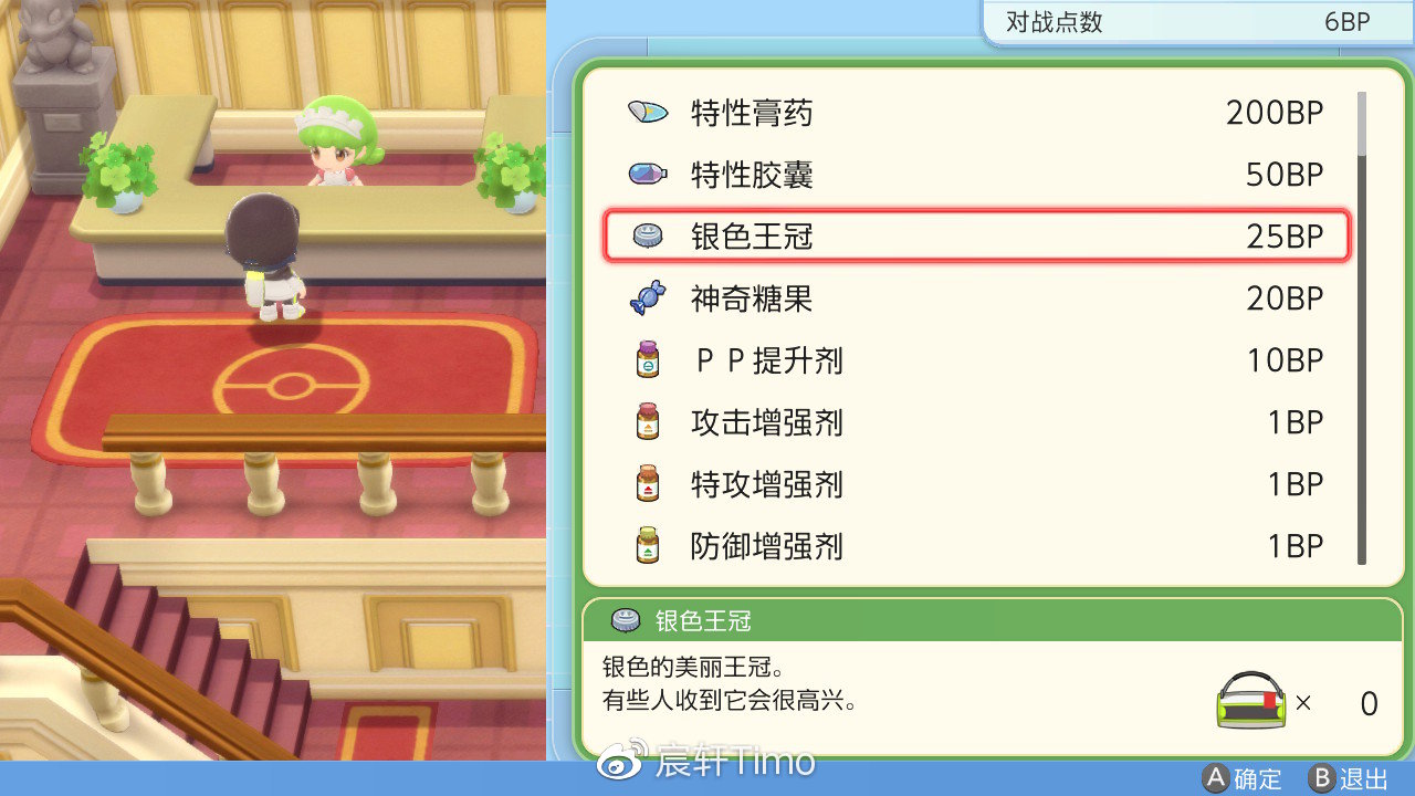 此外,还有一些加快努力值获取的道具,也是可以在对战塔前面的BP兑换处买到的。如果要洗努力值也需要通过树果,不过我忘了截图就不放图了…
