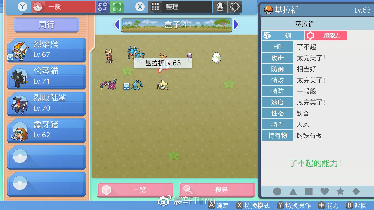 另外如果之前有玩过LGPE的童鞋,可以领到同步特性的梦幻,再抓一些同步特性、实用性格的凯西拿来抓精灵效果杠杠的。