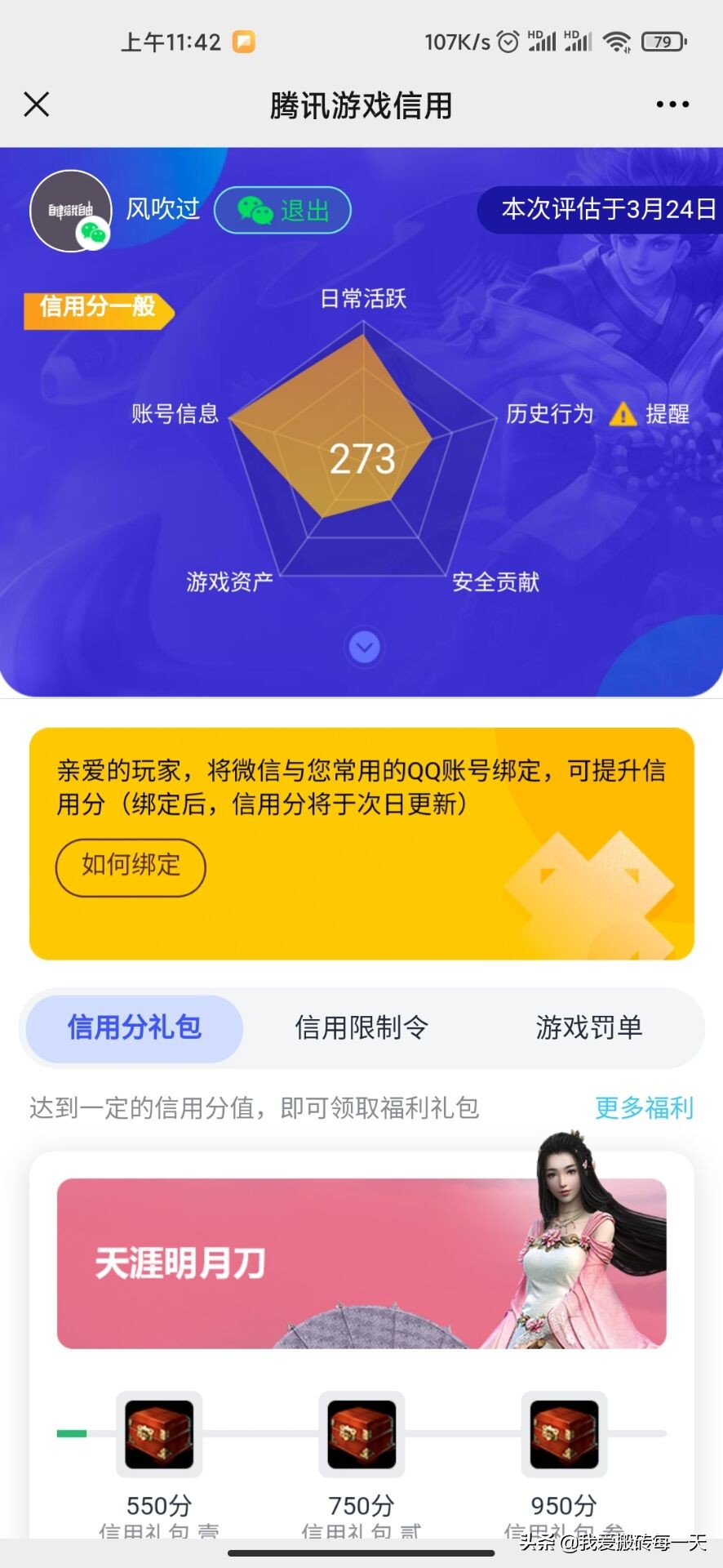 像我自己的主微信,由于长期玩完美世界手游,信用分降得厉害。