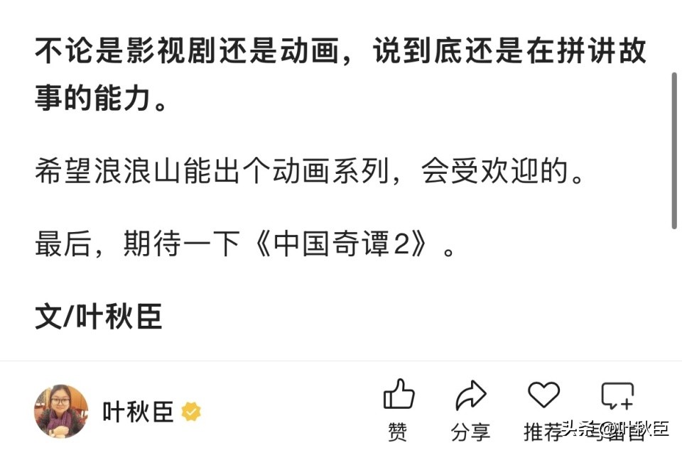 还记得叶秋臣在剧评里曾写过,希望浪浪山能出个动画系列,会受欢迎的。