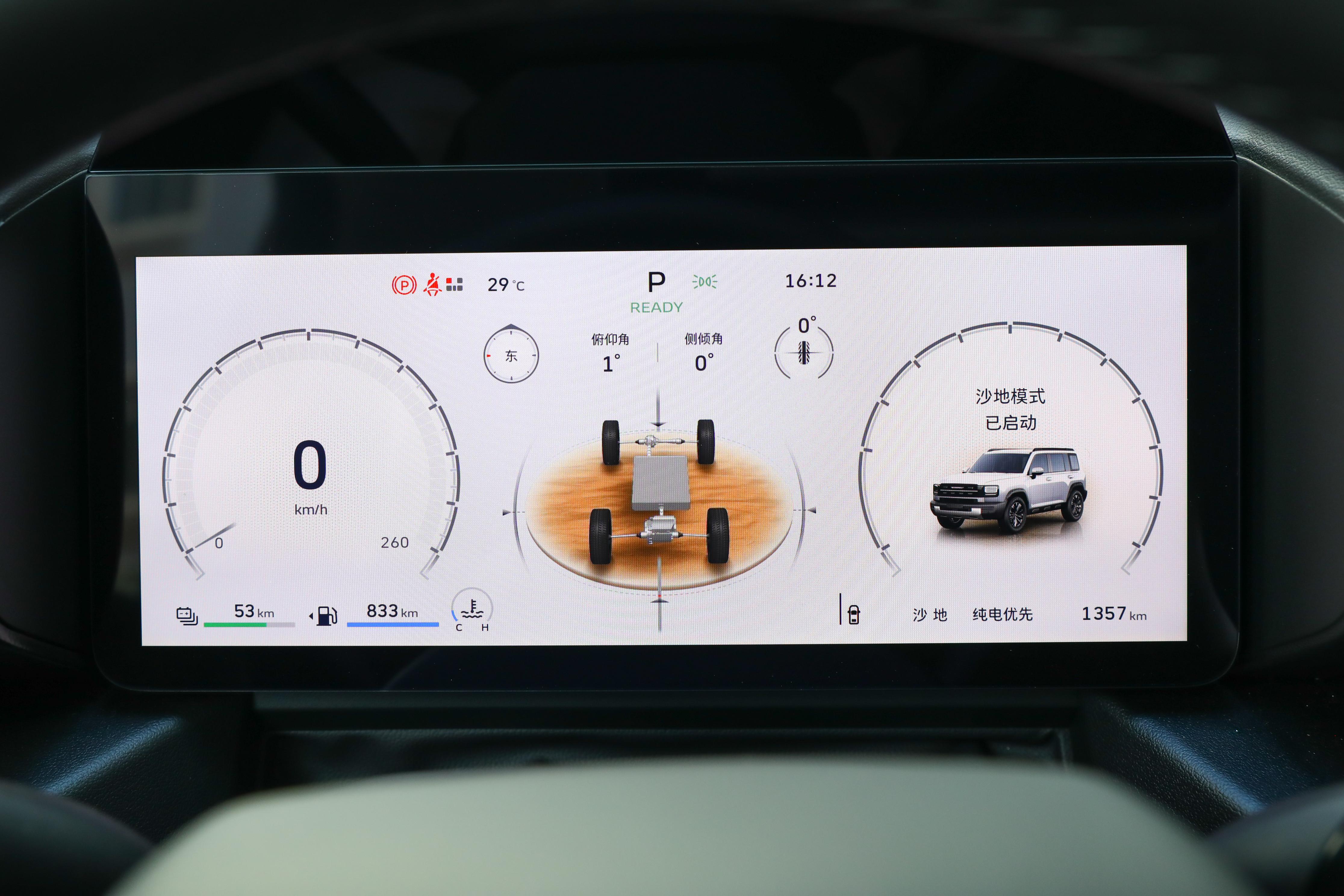 2026款哈弗猛龙PHEV车内座椅造型并未发生变化,前排座椅支持电动调节、加热等功能,后排靠背支持27度-32度调节。配置层面,该车提供全景天窗、HUD抬头显示、360度全景影像、180度透明底盘、内后视镜自动防眩目、后排遮阳帘等。