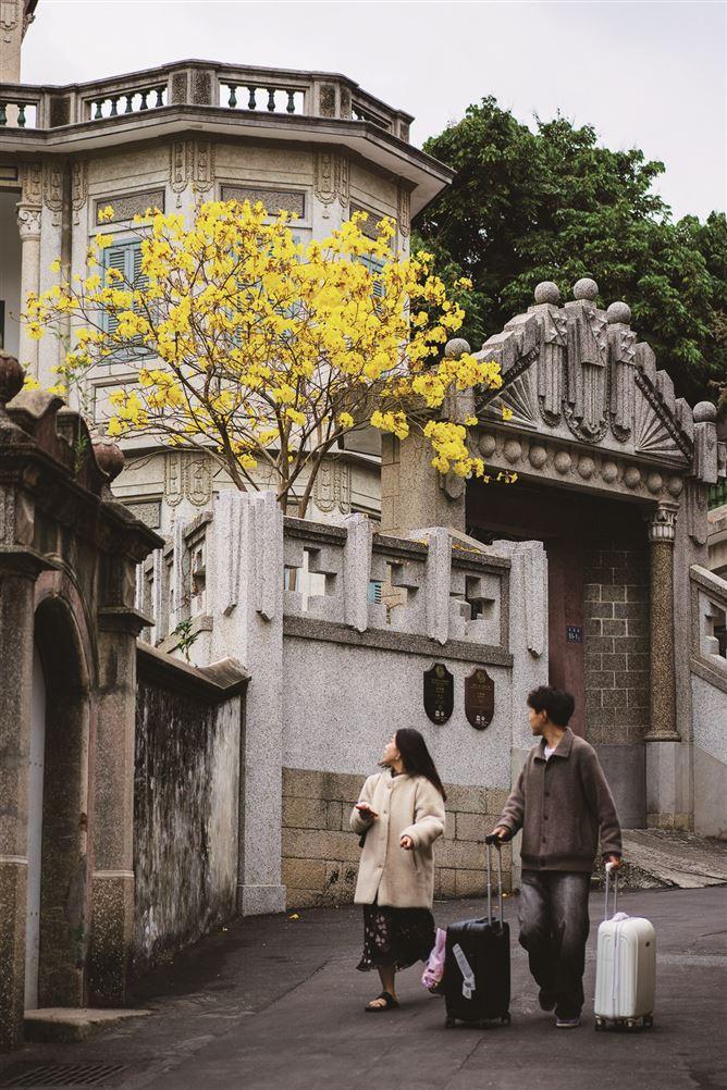 尽管立冬已到,鼓浪屿安海路上的黄花风铃木,依旧能勾起不少人的春日记忆。它的树干并不粗壮,却极为挺拔。春末,枝头上串串花朵紧密簇拥,明艳的金黄色泽,从周遭古旧建筑的历史厚重感中跳跃而出。