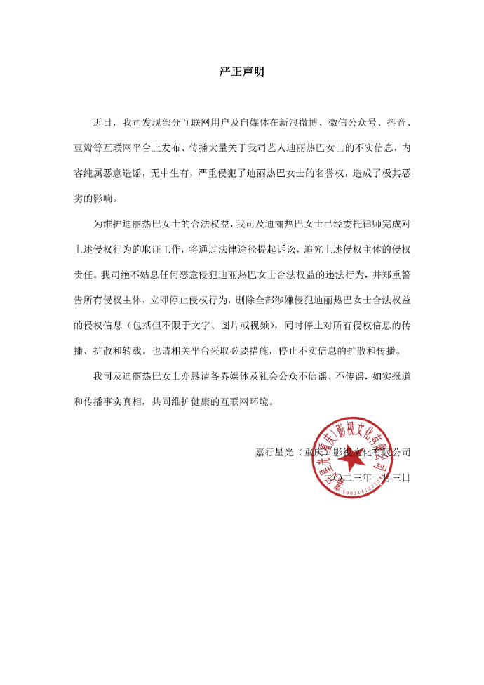 加上虽然工作室多次发声辟谣,但是对于网友所质疑的恋情、怀孕等传闻并没有明确的澄清,起诉网友也只是起诉网友侵犯了迪丽热巴的名誉权、肖像权。