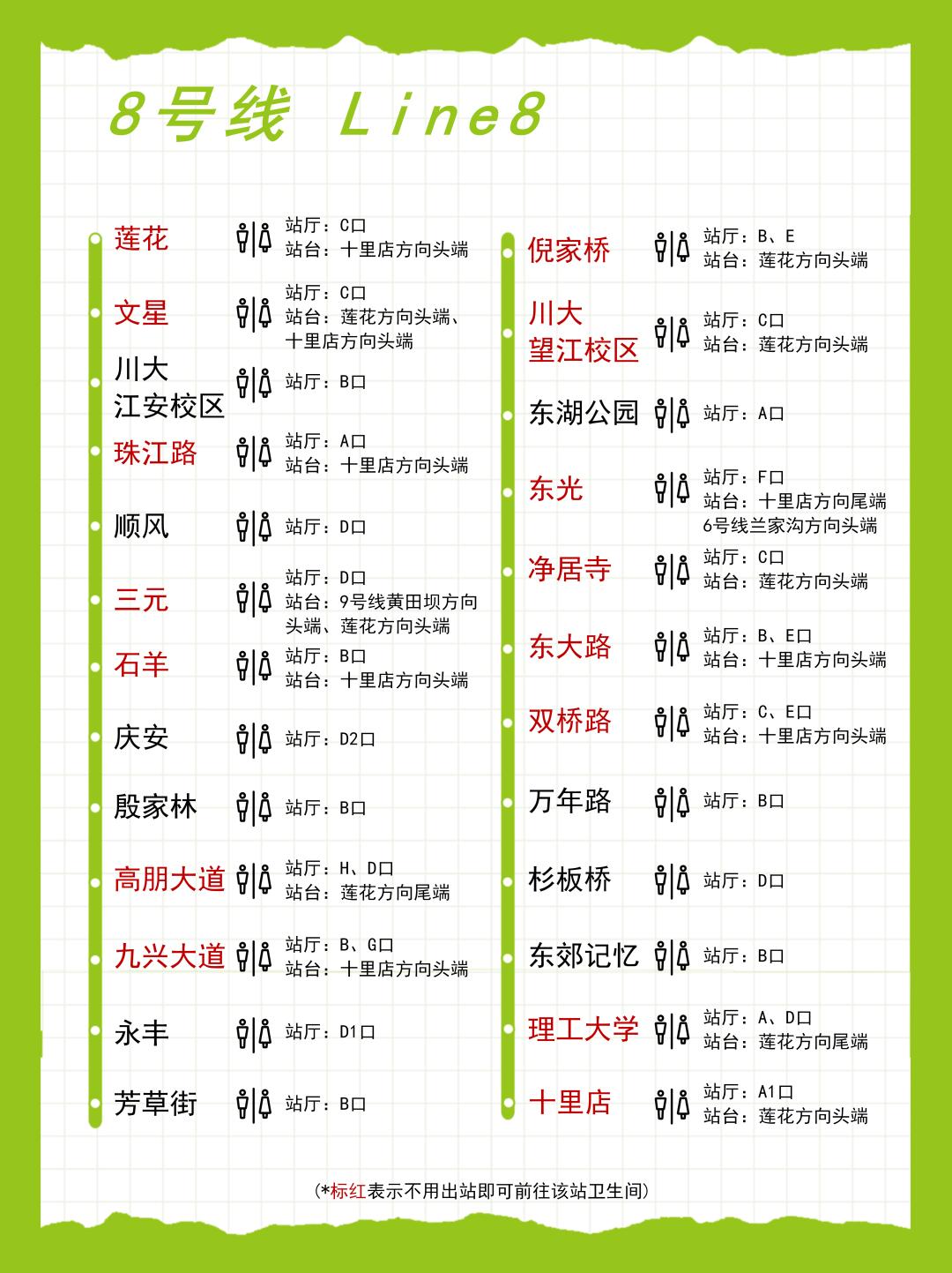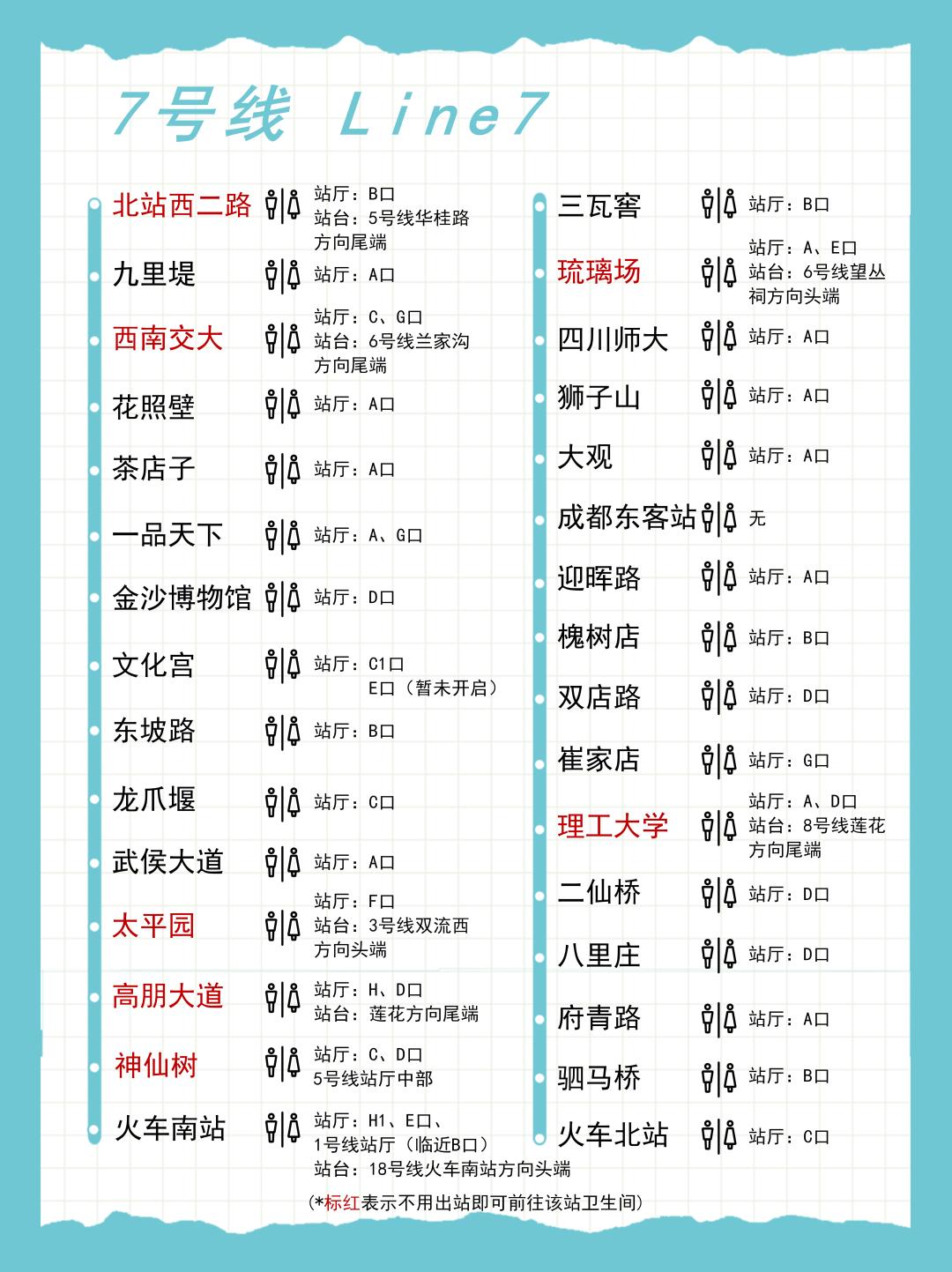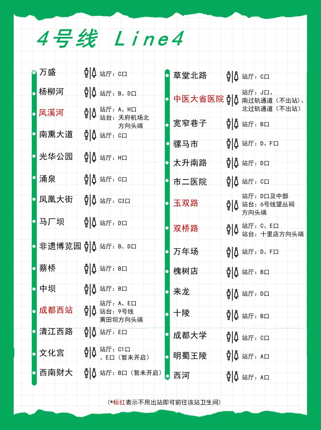 成都地铁各条线路的卫生间分布图