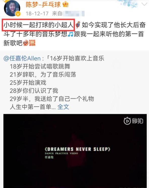 后来的任嘉伦虽然退役进入了娱乐圈,但始终心系乒乓球,他跟今年的奥运冠军陈梦曾经是一个队的,两人还是发小,所以翻阅任嘉伦的社交平台,还能看到不少他跟这位老队友的互动。