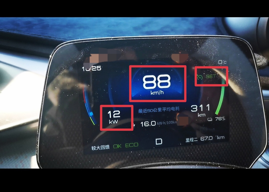 低于90KM高于85KM行驶,定速巡航下电耗在12-14KW之间波动
