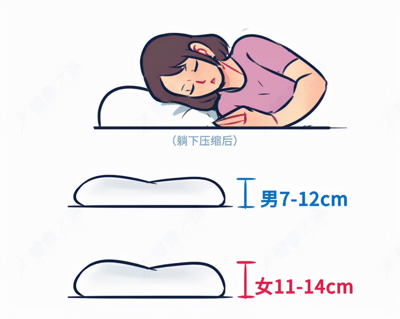 侧睡时可根据每个人的肩膀宽度不同,选择合适高度的枕头。