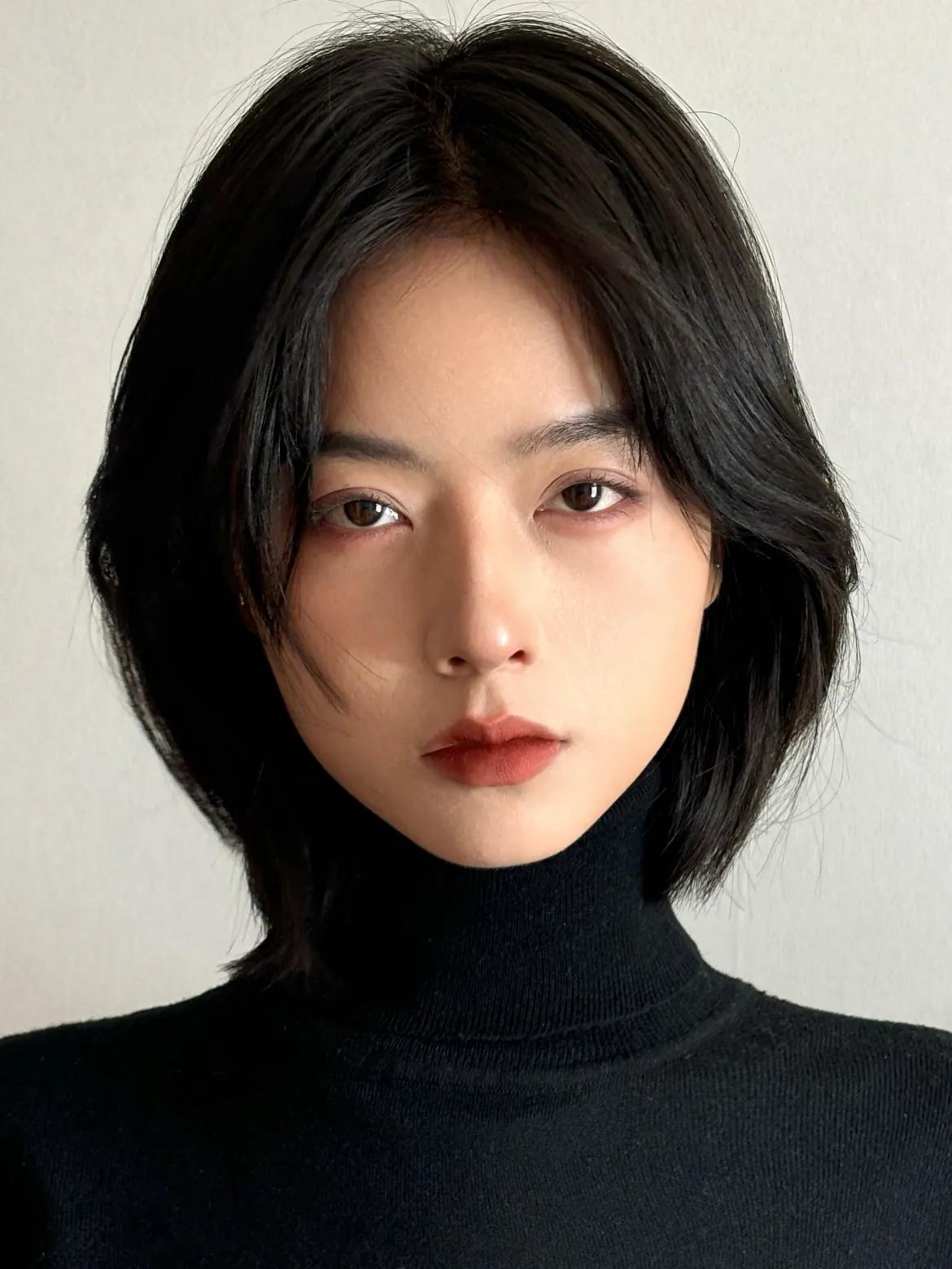 保留了原有的黑色头发、更有一种高冷的酷感、冷艳之风!