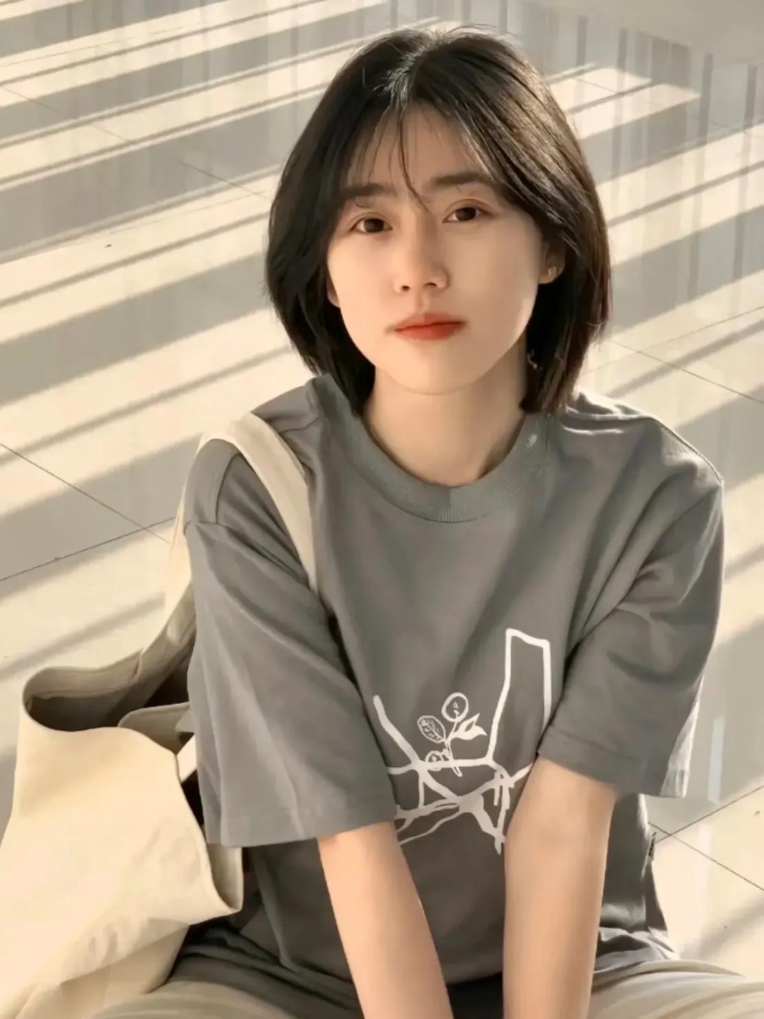 这类氛围感初恋短发长度控制在下巴和肩膀之间,没有过多的修饰,简简单单、干干净净!却看起来很清纯、乖巧的模样!