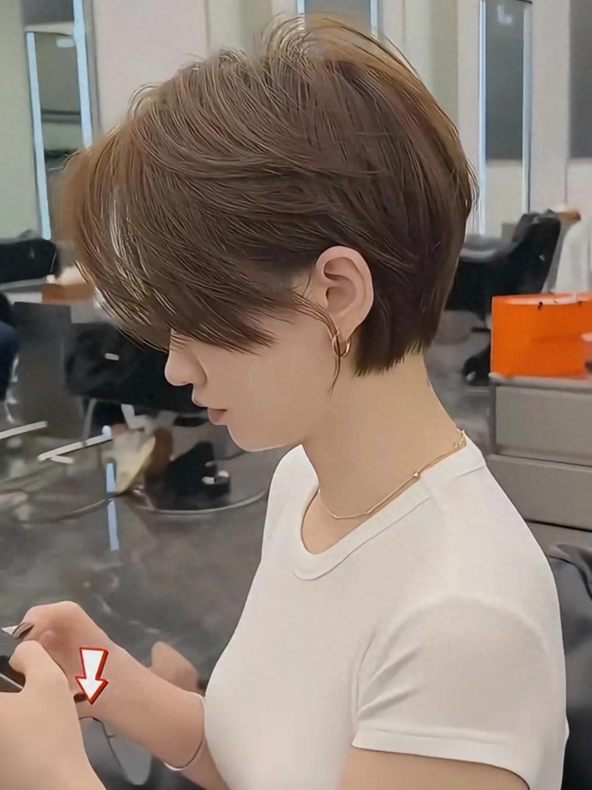 这款短发不仅有着女性短发本身的简约、干练之美,同时还有着柔和、自然的轮廓之美,不失女人味!