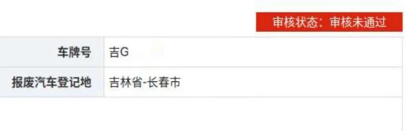 报废汽车登记地与车牌号属地不一致。如下图所示。
