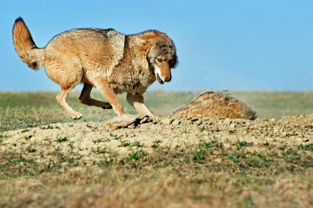 当美洲獾潜入洞穴追赶那些啮齿动物时,郊狼便会在洞口附近守候着猎物的出现,一旦猎物逃出动物,等在门口的郊狼便会迅速出击。这种行为模式非常高效,几乎屡试不爽。同时它们也不会在食物需求上大打出手,而是追求更长远的合作。