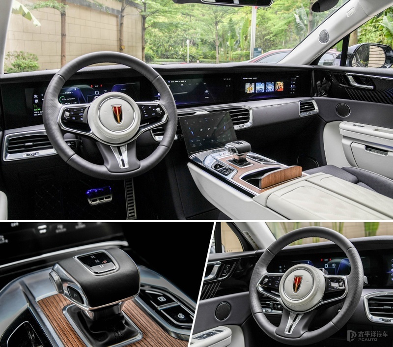 还记得上次试驾红旗H9的时候,就已对那套内饰设计种草,而这次坐进红旗E-HS9的车内,则让我再一次刷新了对于红旗品牌的认知。四块屏幕的中控台让你过目难忘,再加上大量真皮以及金属材质,怪不得这台车被称作“库里旗”。