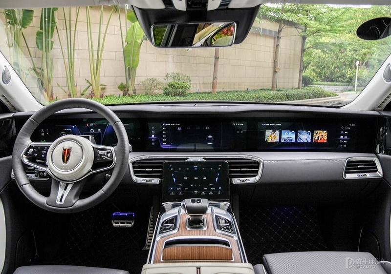 12.3英寸的液晶仪表盘清晰度非常高,左侧为红旗的中国传统特色时间日期显示,右侧为电耗表、时速表以及功率、多媒体显示,UI逻辑很清晰,使用起来没有任何难度。