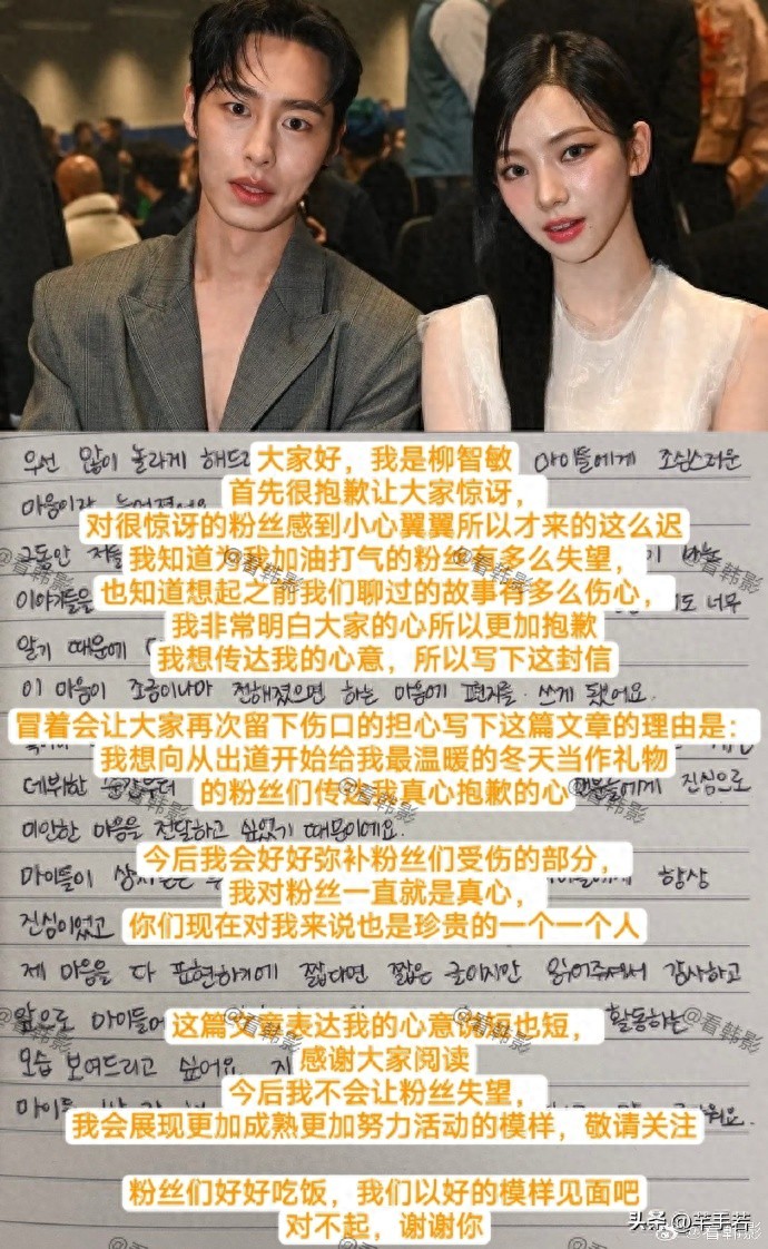 #热点引擎计划#个人觉得柳智敏的中粉确实控制欲强,跪着追星还想要尊严,真的是想多了,人家柳智敏压根就不在乎中粉,用自己4年的应援去和人家一见钟情的男友争取舍,完全就是自欺欺人,结果相信大家也都看到了,柳智敏选择的是自己的男友李宰旭,人家哪怕是以手写信的方式亲自道歉,也不愿意和李宰旭分手,这就是现实。