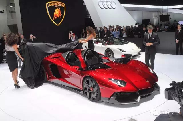2012年,兰博基尼推出的Aventador J是一部没有前风挡的Aventador Roadster,它首次向世人展示是在2012年的日内瓦车展,除了怪异的造车体设计之外,这部车基本上和Aventador没有区别,6.5L V12发动机,数十吨碳纤维材料制造的车身,车体的细节部位套件属于完全定制化的产品,一部没有风挡,没有车顶的700马力巨兽。