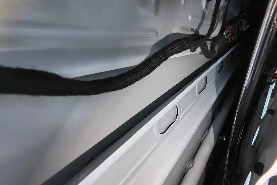 拆掉车门内饰板,内部使用塑料防水膜密封。