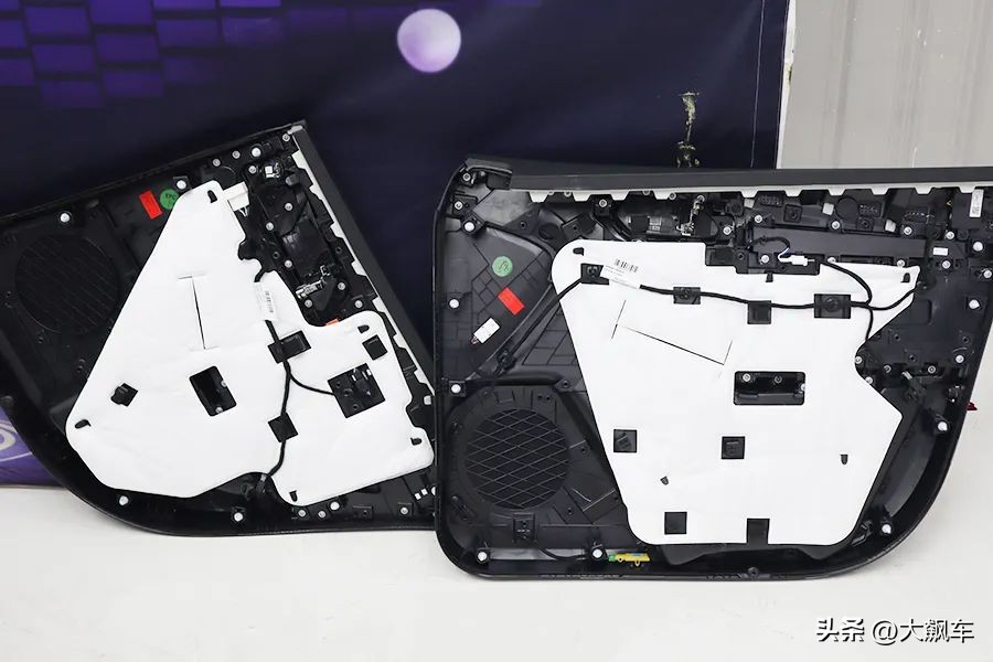 前后车门内饰板的隔音棉不仅是白色原生材料,而且覆盖面积比较大。
