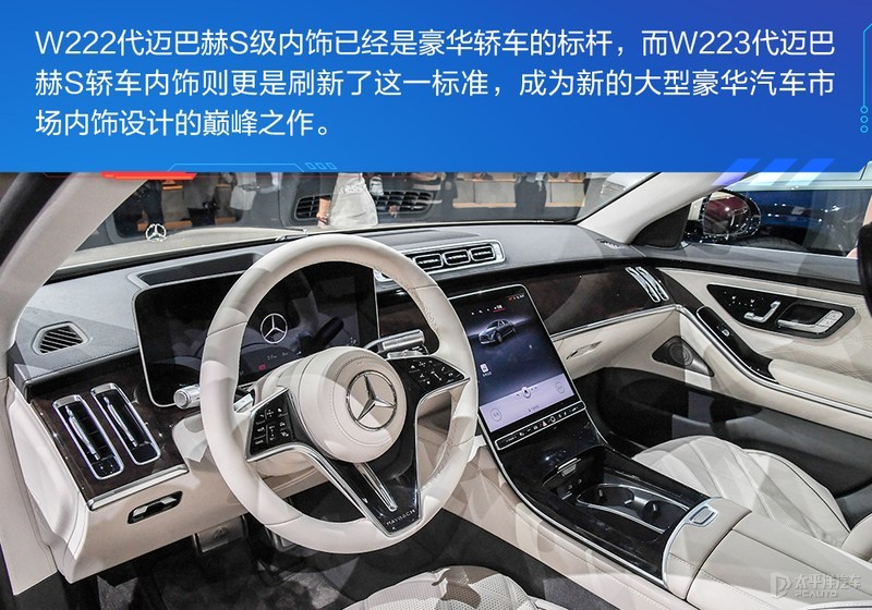 W222迈巴赫S级游艇般的内饰设计可谓是豪华轿车的代表设计,笔者本以为这就是豪华轿车内饰的巅峰之作,没想到在W223上,迈巴赫S级不仅刷新了豪华一词的定义,并且再一次竖立了未来几年豪华轿车内饰设计的新标杆。