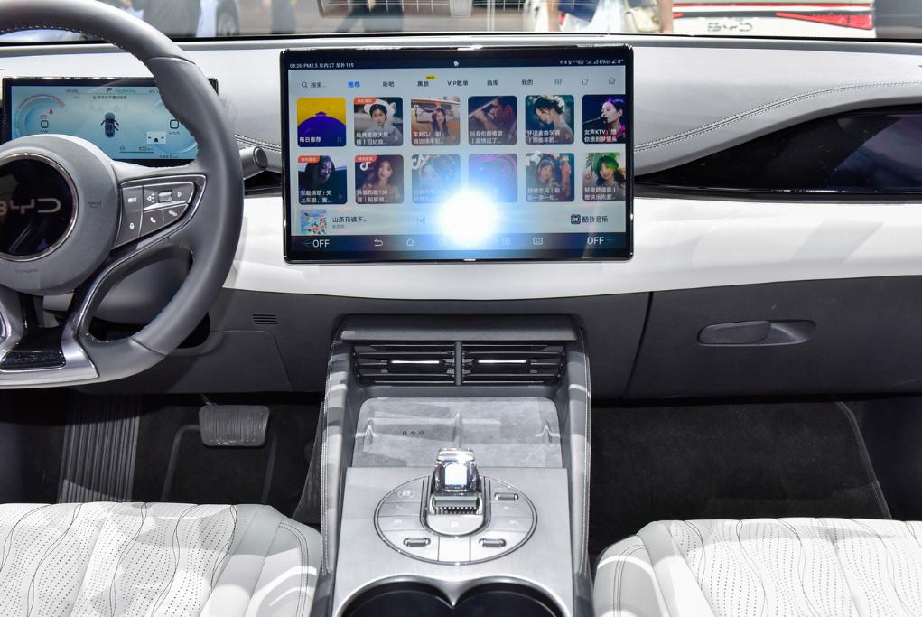 整体上来讲,海豹06 DM-i的造型设计偏向于年轻化,但风格上较为收敛,没有采用海豹那种夸张的大灯。内饰上有一些小心思,例如档把周围圆盘状的按键区。
