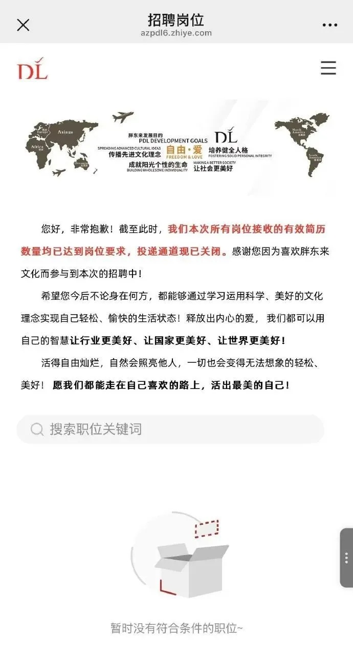 据报道,8月23日10时,胖东来新乡三胖店本轮招聘开启简历投递环节。有网友发现,简历投递环节开始后不到50分钟,简历投递通道已关闭。招聘页面显示:非常抱歉!截至此时,本次招聘所有岗位接收的有效简历数量均已达到岗位要求,投递通道现已关闭。