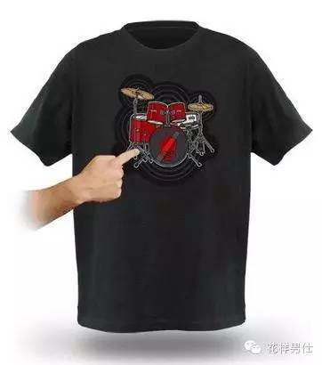 这可不是一件简单的T恤,看到它上面的吉他图案了吧?那真的是可以演奏来的,只要在“吉他”相应位置按下和弦,再拨动“琴弦”,就会演奏出美妙的音乐。这款T恤名为“Rock Band”的T恤是根据电磁感应的原理来设计的。演奏者手拿一块特别的磁拨片,只要轻轻挥动手指,声音就会从衣服左下角悬挂的小音箱中发出,这时你可以尽情的呐喊了。
