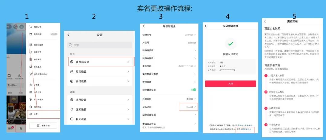 许多朋友可能不知道,抖音号的实名是可以更改的,而且更改实名的操作流程很简单,只需准备新旧实名人的相关信息就可以了。