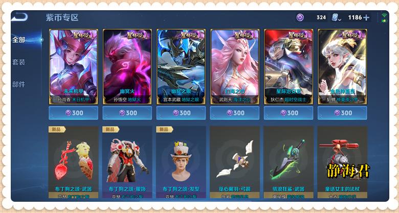 确实,在针对部分英雄的特定套装时,蓝星币确实可以当做点券来用,但其局限性实在太大,稍微好一点的星元皮肤/部件就只能用紫星币或者点券来购买,要不然我也不会攒到1600多个了。