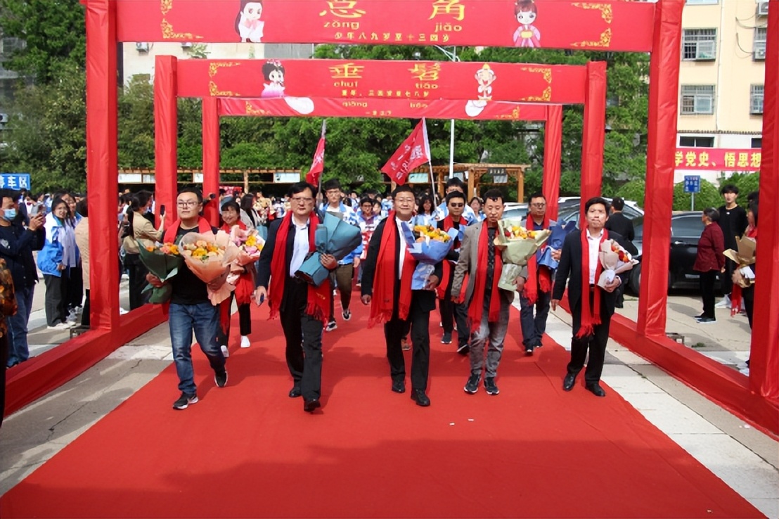 学校领导、年级领导带领学生过成人门。
