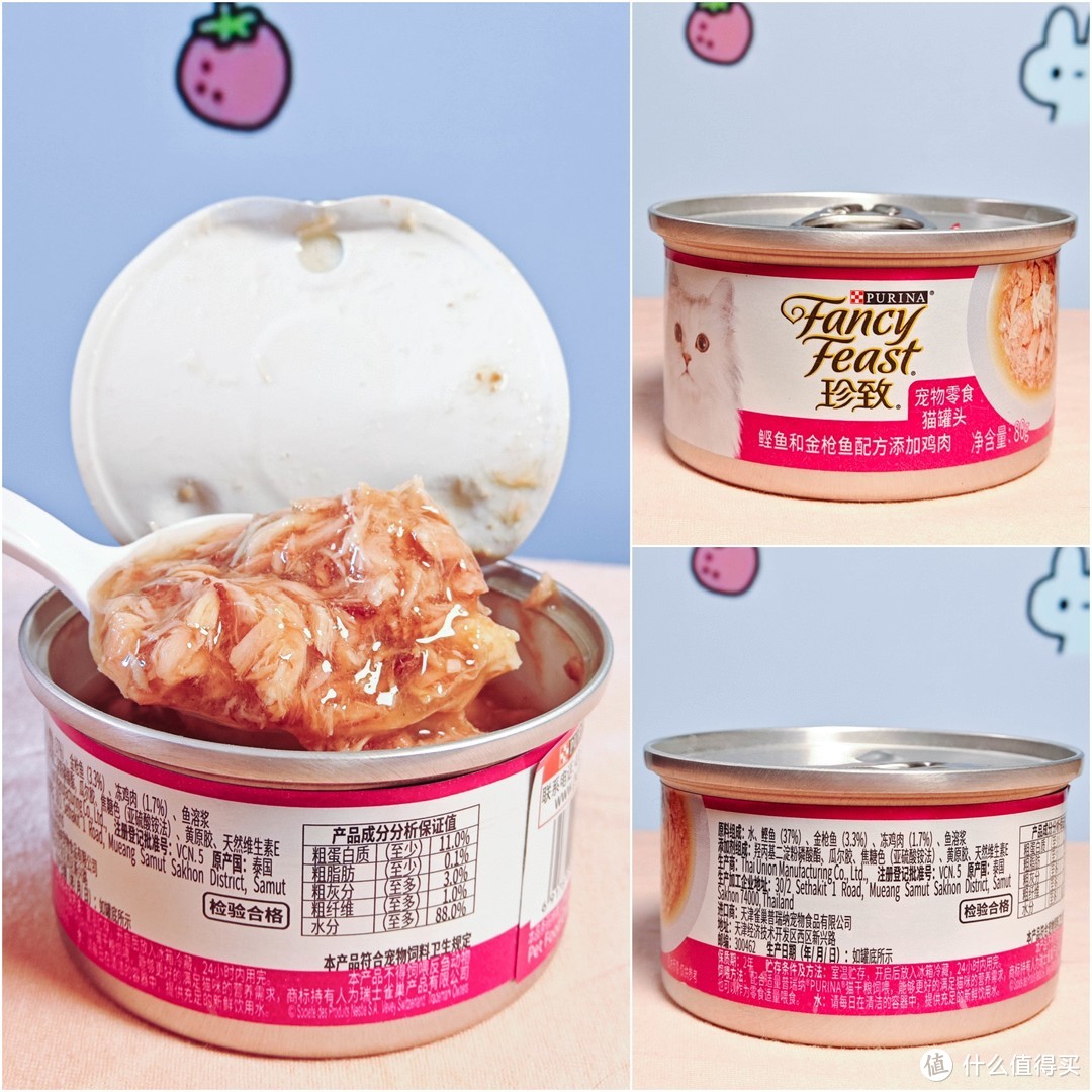 美中不足的是加了瓜尔胶和黄原胶,个人觉得如果是给自家猫咪可以用勺子刮开这些胶质、或者过一下水再吃,如果是喂流浪猫直接给就行了。