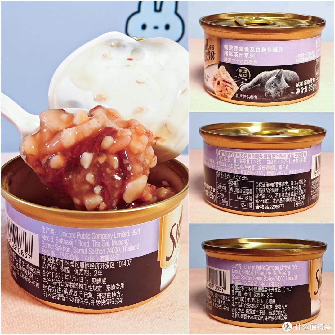 实际投喂时,我家小黑喜欢喝它的汤汁,舔到罐头表面都干爽了为止,不爱吃肉。拿到楼下给流浪猫,喜欢鱼腥味的猫咪舔一下就不吃,喜欢肉味的猫咪几口就吃完了。
