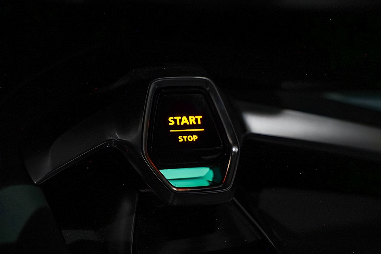 平底式方向盘采用真皮包裹,握感舒适,在3点及9点位置进行了打孔工艺处理,增加了透气性;配合很有科技感的一键启动按键造型、如飞机排挡般的换挡机构,整个驾驶席很有跑车氛围感。同时方向盘上还设计有换挡拨片,能够为驾驶者提升一定的驾驶乐趣。值得一提的是,无论启动按钮、挡把还是右侧杯托,都通过非对称的造型,产生不平衡感,进而带来视觉上的动势。