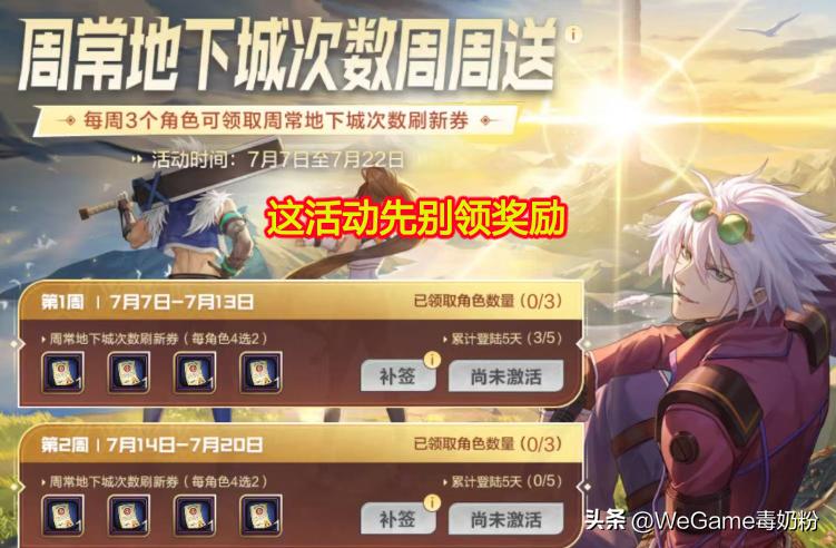 那么“周常地下城次数周周送”这个活动千万要注意了!先别领刷新券,因为65级活动奖励能用在70副本之上。