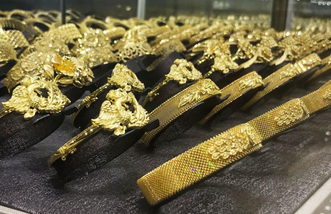 某珠宝展上商家展示的黄金首饰 图片来源:每经资料图(图文无关)