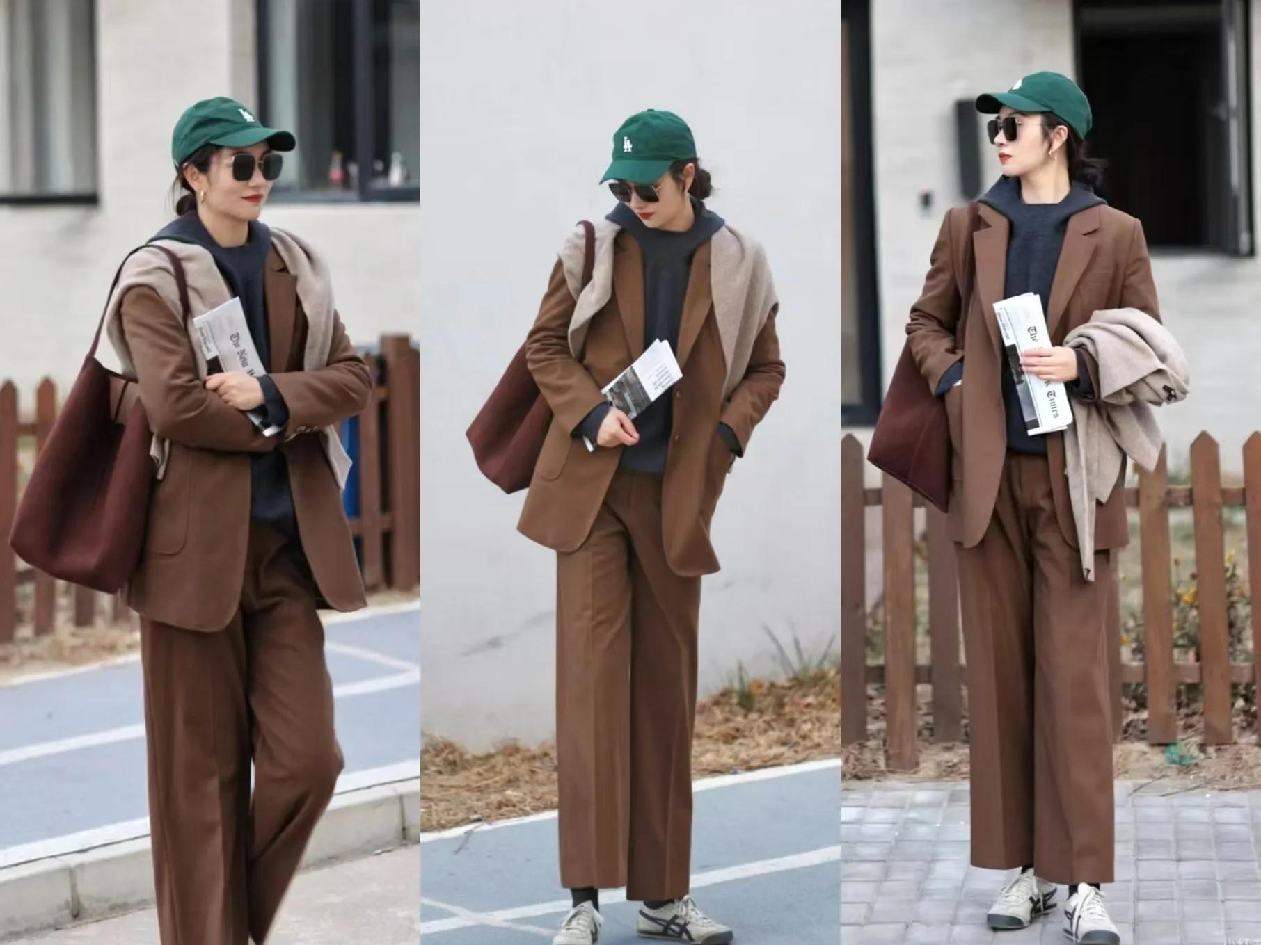 如果穿上一套棕色西服套装,则更简约高级,还省去了搭配烦恼。无论是穿上丝绒、羊毛、灯芯绒、磨沙皮等不同材质西服套装,都给人一种职场干练利落又高级气质。