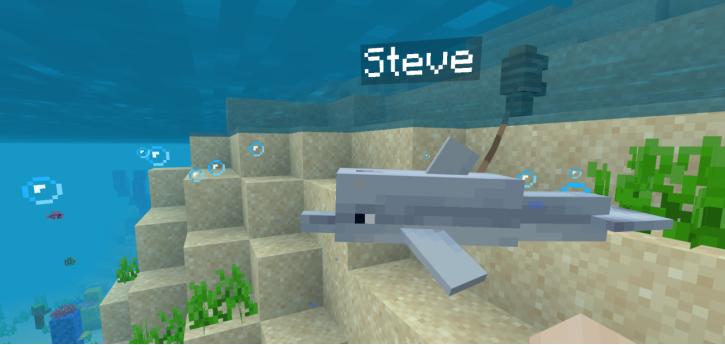 如果在Java版中,冒险家们在海豚附近速泳的话,海豚就会主动跟随玩家一直吹口哨,还会给予玩家5秒钟的buff效果,名为“海豚的恩惠”,会显著提升你游泳速度。但是你隐身让它看不见的话,海豚可就不会给你这个效果咯