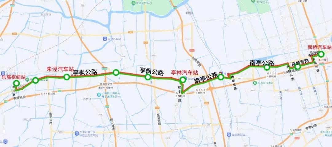 起讫站:乐高乐园枢纽站~朱泾汽车站。