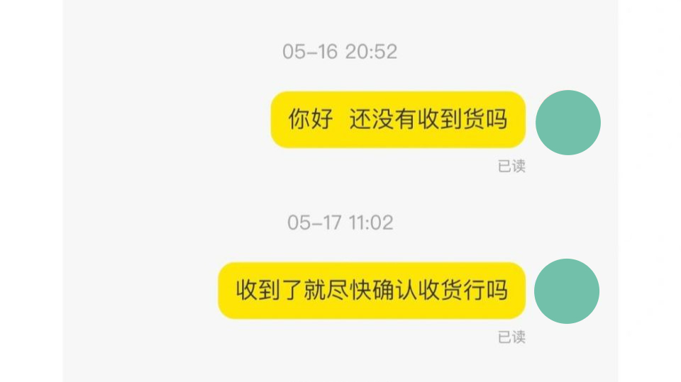 但凡事都有例外,如果像标题中说的那样,会遇到“买家故意不确认收货”的情况时,别说是发消息,就是打电话催促对方,对方还是不会主动确认收货,而遇到这种情况,作为卖家,其实是非常被动的,不敢过度催促买家,又没有其他的方式可以促使买家确认收货,太过激的手段还容易被投诉,此时唯一能做的就是等待。