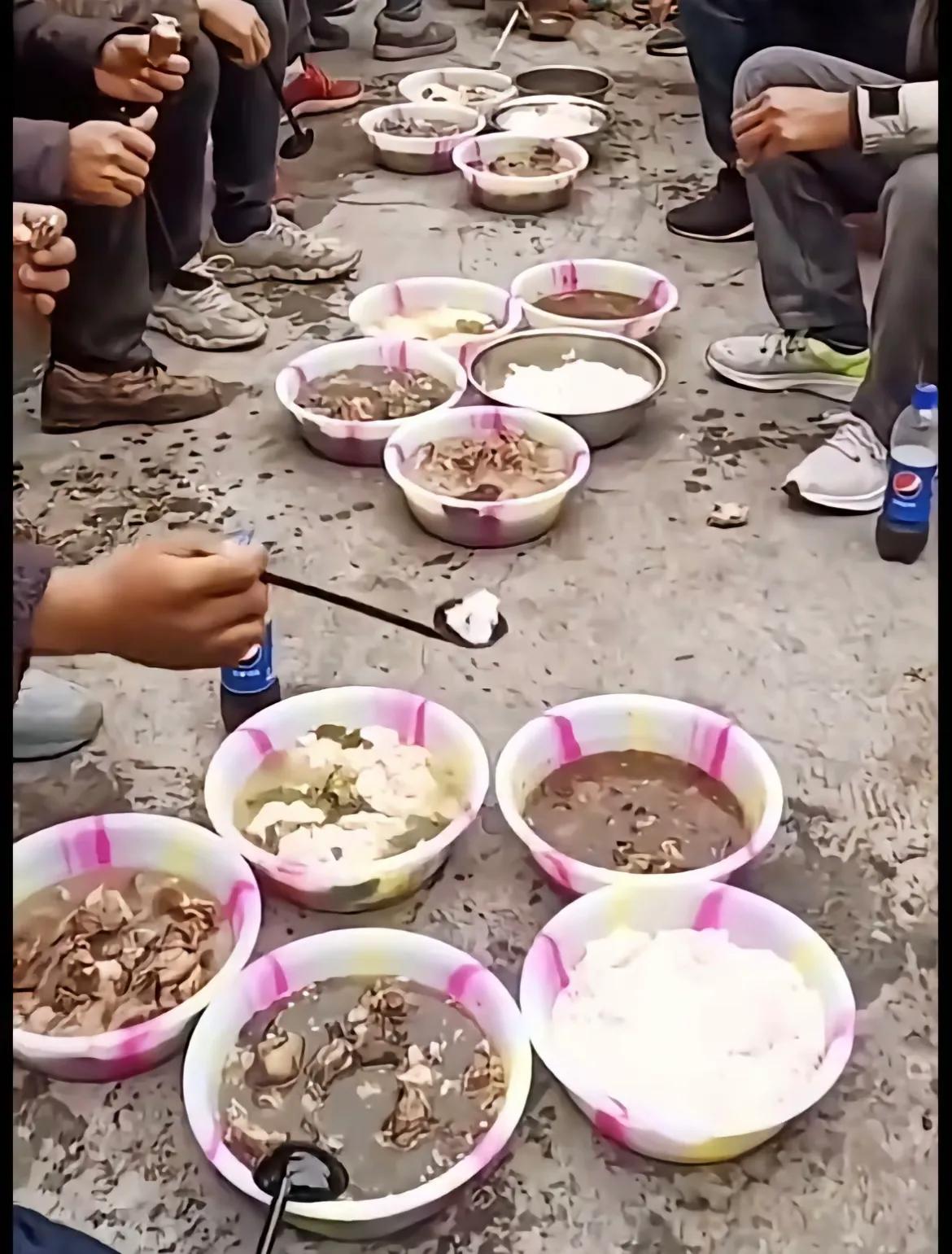 ➡网友也在调侃,没有碗筷,没有桌椅,要是我的话吃不下去,没有碗吃饭就不叫吃饭了,而且喝汤时汤汁也会滴的到处都是,这样蹲着腿真的不麻吗?
