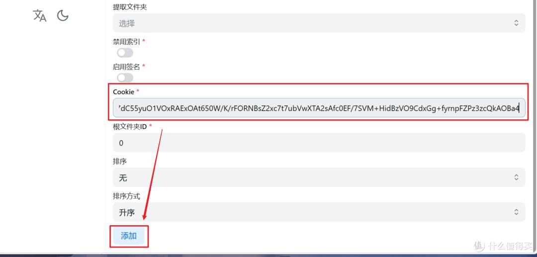 然后将夸克网盘网页端复制下来的Cookie字符代码粘贴到方框内,最后点“添加”。