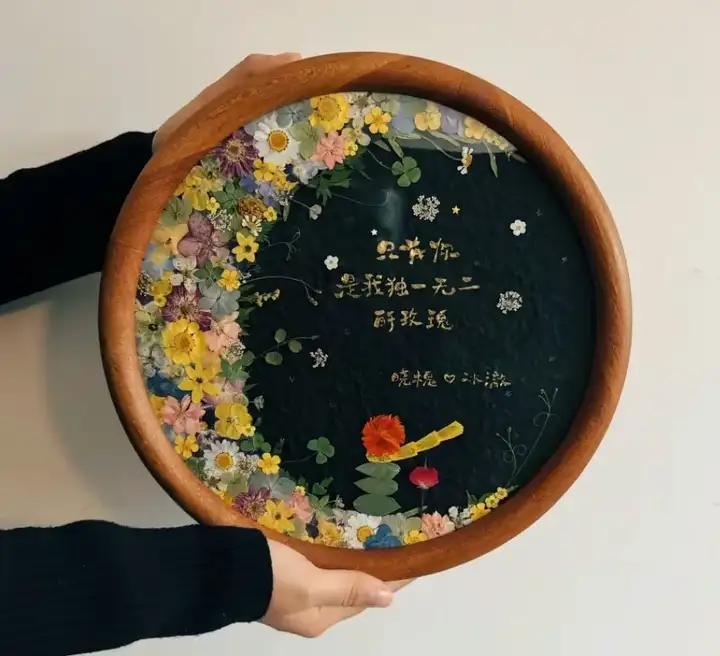 这个小王子主题的相框真的很好看~而且仔细看其实小王子也是花朵拼贴出来的,所以里面放的是永生花,这个需要自己手工制作,如果没时间或者手残,可以直接加钱选择成品。