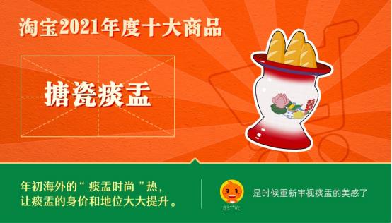 12月22日,淘宝发布“2021年度十大商品”,频上热搜的奥运冠军“杨倩同款小黄鸭发卡”、年初火到海外的“搪瓷痰盂”、热播剧《觉醒年代》周边、表情包里天天见的“吴京同款运动服”等网红商品高票入选。