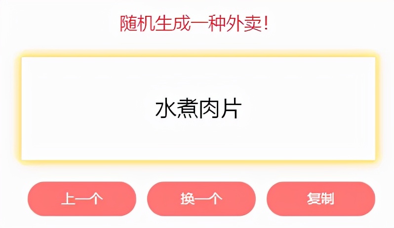 支持随机生成外卖或家常菜的菜式,摸不准吃什么的时候,可以来随机生成一道。